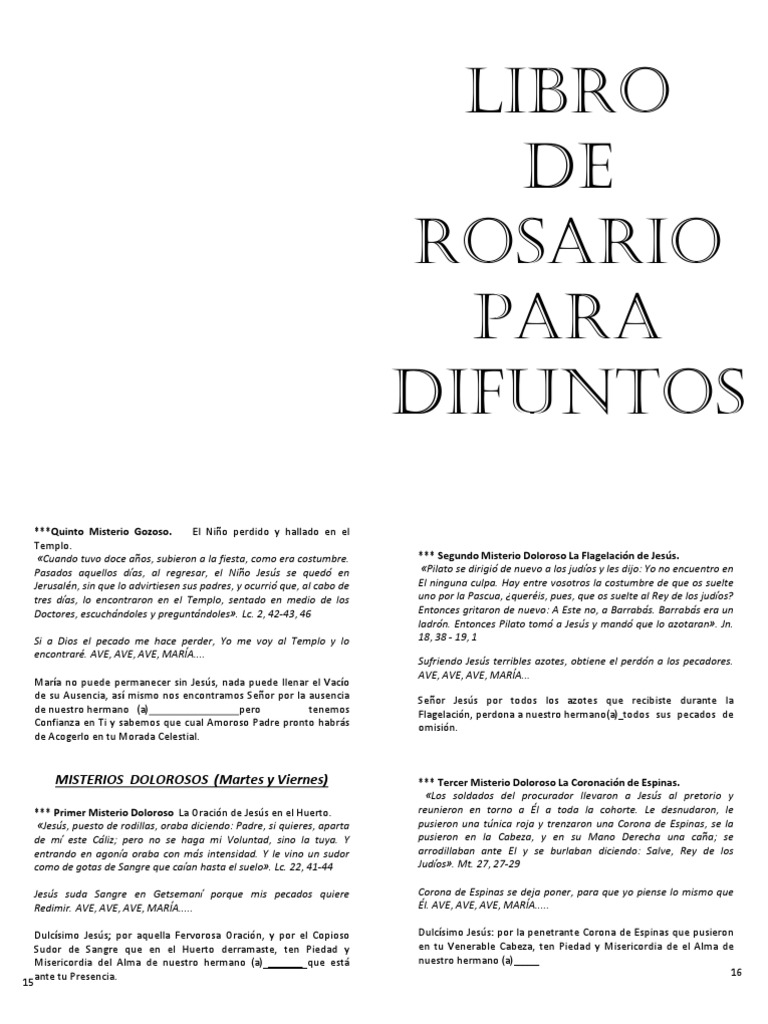 Libro del santo rosario para difuntos pdf. El rezo del Santo Rosario por los difuntos para los días Martes y Viernes Misterios DIFUNTOS como puedo descargar la plantilla para levantamiento de cruz. Sin pecado concebida Gua.